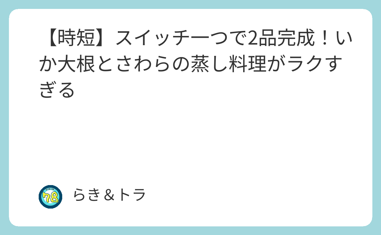 【時短】スイッチ一つで2品完成!いか大根とさわらの蒸し料理がラクすぎる