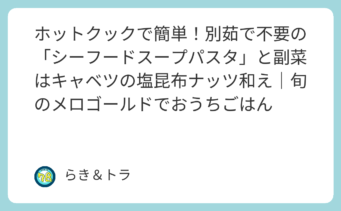 ホットクックで簡単!別茹で不要の「シーフードスープパスタ」と副菜はキャベツの塩昆布ナッツ和え|旬のメロゴールドでおうちごはん